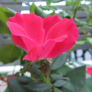 こんにちは😃 こちらはノックアウトさん🌹 チェリーボニカ🍒に似ていますが少しこちらの方が蛍光色が強いです😃花びらはノックアウトの方が少なめです😊 今朝消毒したのに雨が降ってきちゃいました😭