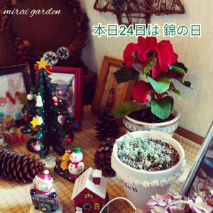 こんにちは(*ˊᵕˋ*)੭ ੈ 今日は24日ですね♡そうです☝️ 24日といえば、錦の日です😘🌱 主催の私の投稿が遅くなってすみません😅 皆さんの斑入りさんや錦さんの投稿ご参加お待ちしています(❁ᴗ͈ˬᴗ͈) 🏷⸒⸒錦の日よろしくお願いします(ㅅ˙ ˘ ˙ )♡ 我が家の玄関の棚には、最近恒例となったクリスマスグッズを飾ってます🎄🎅🌟 大人ばかりの家族ですが、雰囲気だけでもクリスマスを感じたいですからね🎅🏼 うちの錦さんはクリーム玉蛋白さん♡ 今年の夏にお迎えしてから全然増えない💧 でも生き残ってる子を大切にしてます🤭❤