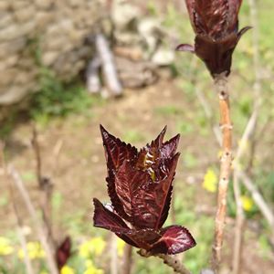 アジサイ 未来🌿 品種名がわからなかったんだけど多分“未来”だと思います😁 新芽はとってもシックなカラー💜 成長してくると緑の葉っぱにこの色の縁取りとなります🌿 お花もとってもカワイイお気に入りのアジサイ💕 株もとから新芽がたくさん出てきていたので今年は大胆に詰めてみようかな😊