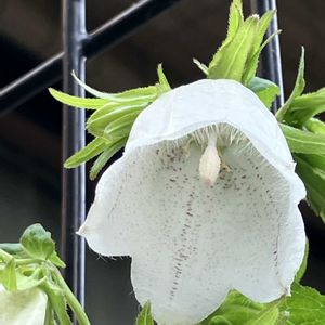 おはようございます🍀 ①②③ 白いホタルブクロが 咲き始めました🤍 釣り鐘形のお花の中を 覗いてみたくなります♡ 紫はまだかな…💜 ④ 雨で折れた薔薇を カット✂️しました🌹