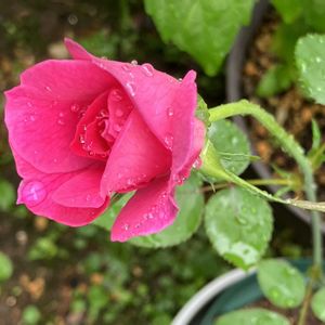 おはようございます🌿 昨夜はたくさん雨が 降りました☔️ 今は止んでいます。 今朝の薔薇🌹… 雨に打たれてたくさん 下に散っています💦 蕾はカットましょう✂️ まだこれからも 降りそうです🌂