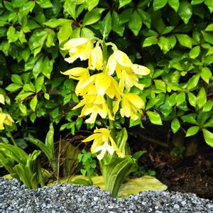 近所のご婦人からの頂き物、無事咲いてくれました。黄色の山野草エビネ(茶色はまだ)です。 朝日程度当たればいいよ👌、が少し西日が当たります。ドウタンツツジの花が終わる頃目立つね☺️