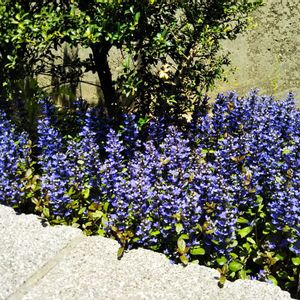 満開になりました。🐝沢山来てもらってます、「アジュガ チョコレートチップ」10年前妻の実家からもらってきたが、春雑草と間違えて取ってしまいました。数年前HCから購入、この一角は手が出せません。もうすぐ一角が全面になります。