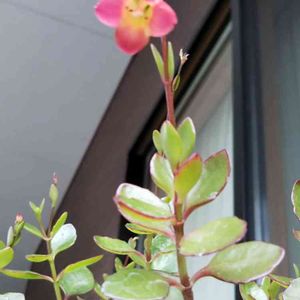 カランコエですが、一輪寂しい限りです。冬の管理に失敗してしまいました。花芽付く頃お水や液肥怠りが原因ではないでしょうか。駐車場に出し茶色の部分を大分捨ててしまいました。初心者🔰ですな。でも一輪だけでも綺麗さはかわりありません。