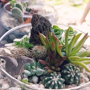 DAISOのガラスの器でテラリウム🙌 石と流木は海で拾ったものです🌊 たまにはこんな寄植えも楽しい♡