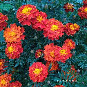 トマトの虫除けにと間に植えたマリーゴールド トマトの時季は終わり、マリーゴールド畑と化しました。