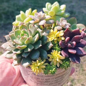 手の平サイズのリメイク缶に寄せ植え作りました🙌