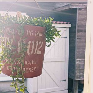 大きめの塗料缶を半分にカットして作ったリメイク缶に寄せ植え🙌 根付いたみたいでみんなイキイキしてきました✨