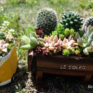 先日DIYしたウッドプランターに寄せ植えしました🌵