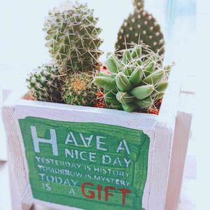 diyしたウッドプランターにサボテンの寄せ植えを作りました🌵🌵🌵 かわええなぁ😍