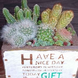 自作のウッドプランターにサボテンの寄せ植えを作りました🌵🌵🌵🙌