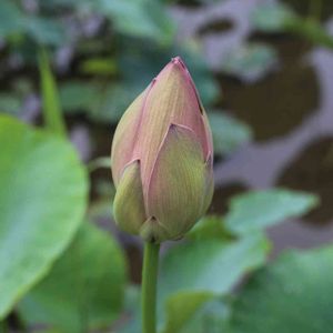 ハスのつぼみ つぼみだけでも、結構きれいですね。 まだ、ハスも咲き出したばかりのようですが、つぼみが一つと花が二つしかありませんでした。