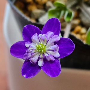 今晩は😃🌃 先日 花の里いいじまの「福寿草雪割草展示会」で購入した 雪割草が 開き始めました🎵 蕾の状態で選びましたが 開いてみると想像以上に可愛いお花でした😄💕💙