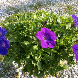 ペチュニアのイージーウェーブ・ラベンダースカイブルーが無事に冬越しして、花が咲き出したよ~💖