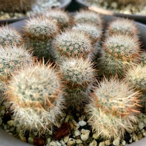 ギムノカリキウム・ミハノビッチ VOS1241 2回目のお花が咲きました🌸 手前は2〜3日前から咲いて居るもの 奥は今朝咲いたものです 花もちが良いんですね そしてほんのりシックな色に変わるのね 昨年うちに来た時、付いてた蕾が環境の変化によるストレスから落ちてしまったけど、今年は沢山咲いてくれて嬉しいな☺️ありがとう😆 そしてマミラリア・エルサム 棘のないサボテンを探してて購入 金平糖みたいな見た目が可愛くて🥰 今年に入って結構大きくなったから鉢とほぼ同じ大きさに✨ 夏過ぎたらすぐに植え替え出来るかな? 春まで待ったほうがいいのかな