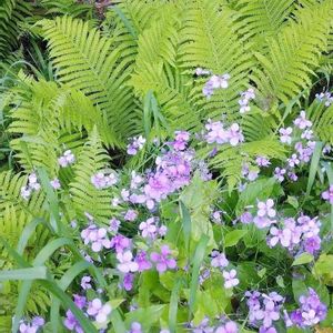こんばんは🌃 今日はシダの日🌿 散歩で見かけたので🎵 シダと花だいこん💠 何とも不思議な組み合わせで面白い🎵🎵💕