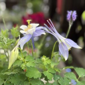 今日のお花 オダマキ こぼれ種からあちこちに咲いているオダマキ ウィンキーダブル レッド&ホワイト♥️🤍 場所、咲き進み具合で色の変化が可愛いです♡(*´ `*)イヤシ、、、 5枚目は先日お迎えしたキリガミさんライトブルー&ホワイト🩵🤍 涼し気な色がお気に入り๑ ᷇ 𖥦 ᷆๑)♡