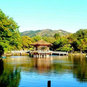 久しぶりの 【奈良シリーズ】 (ほぼ二年前の写真) 奈良公園の浅茅ケ原園地内にある 鷺池と浮見堂の風景 鷺池では、貸ボートに乗ることができ、ちょうど二年前の今日、乗りました。 遠くに見える山は 「高円山(たかまどやま)」 です。 奈良では、毎年8月15日夜、この高円山で 「大文字送り火」 が行われます。 奈良の大文字送り火は、8月16日、死者の霊をあの世に送り届ける京都・五山の送り火の趣旨とは異なり、歴史が浅く、戦没者慰霊の儀式として行われています。 「大」の字は高円山一か所のみですが、その字の大きさは日本最大級だそうです。 浮見堂周辺は、奈良・大文字の送り火の鑑賞スポットです。