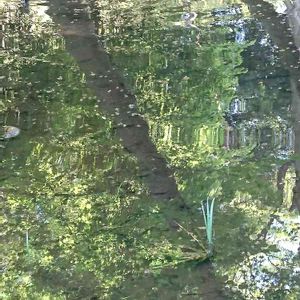 【東京・散歩】 ~水の中の新緑~ 一番上に鴨が二羽仲良くお散歩していますので、これは、水面です。 できれば、写真をチョンとタッチし、二本の指でシュッと縮小して、写真の周りを黒くして、ご覧になっていただくと、印象派の絵画のように見えないでしょうか。