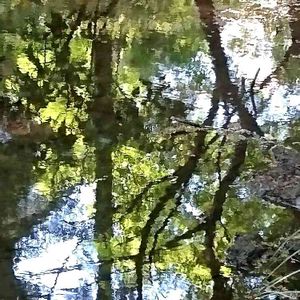 【東京・散歩】 ~水の中の新緑~ 水面が、新緑を逆さまにして楽しませてくれています。 これも、写真をチョンとタッチし、二本の指でシュッと縮小して、写真の周りを黒くして、ご覧になっていただくと、印象派の絵画のように見えるのではないでしょうか。 新緑を楽しむのに、見上げるだけでなく、池や小川の水面を見る楽しみ方も教わった気がします。 「春に訪れて、秋を想う」 秋の散歩も楽しみです!