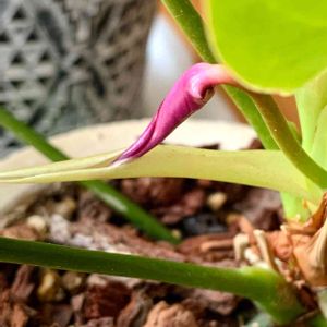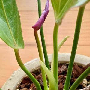 金曜日の蕾たち🏷 (懲りずに) アンスリウム お花に見える仏炎苞 ここまで立ち上がりました いつこの袋から顔を出してくれるのかと ずっと見つめてきたけれど あともう少し❗️ がんばって‼️ 今のこの姿が、鳥の雛に見えてしまう私🕊 心が熱くなってしまいます💖