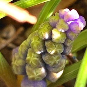 ムスカリの巧みな知恵は モサモサと葉を重なり合わせての冬越し その細長い葉っぱを掻き分けたら いましたよ🔍👀 小さな小さな小指姫👸✨ 金曜日の蕾たち🏷💖