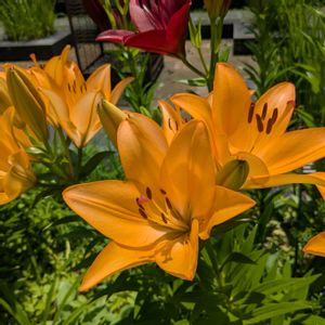 2025/8/14 撮影 「百合」in 九州 ①百合 ②雑草取り用🪑…2代目🪑 ※山の日8/11に完成 初代🪑(左側)は数十年前のもの。 おそらく日本製… 昔の木製🪑ってとっても頑丈。