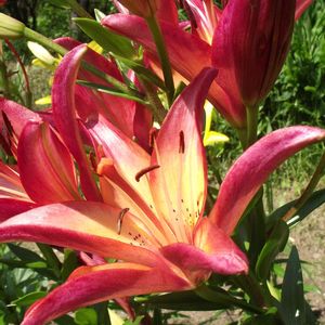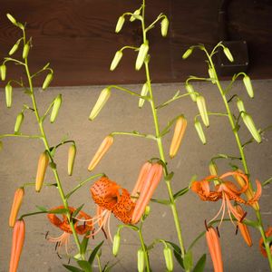 オニユリの花色変異種であるオウゴンオニユリが開花してくれました。 こちらの株は対馬原産の純血種かは不明ですが、特徴的に純血種かそれに近いものだとは思います。 前年に交配親(♀)として種子を採取させていただきましたが、若干花数が減少した程度で前年とほぼ変わらず元気なので、このまま株を肥大させていきたいです。