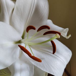 おはようございます。 我が家の百合はこんな感じ ゴージャスに咲いてくれたけど市販とはちょっと違うから傷みが出ちゃうかな でも香りはどっちいいから玄関で癒されてます😌 昨年購入2年目