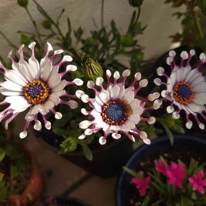 *オステオスペルマム* 🤍ホワイトバリエガータ🤍 *オステオスペルマム* 💜サニー💜 *ローダンセマム* 💗マーキュリー💗 先日、この子達をお迎えしました。 この3種を選ぶだけで、目移りし過ぎて困りました😅 これから楽しみです💕💕