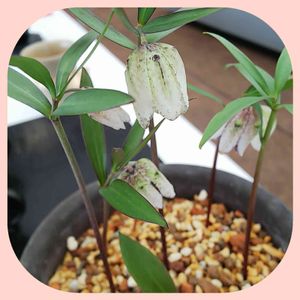 コシノコバイモ 今日の花 先日の植物園で見かけたコシノバイモ。 細い体に一つずつ鈴を付けて咲いてました。 野生では見たことも無いけど、どんな所で咲いてるのかな…💓😍