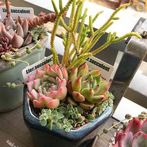 おはようございます☔️ 昨年1月に 小さめ苗をまとめて丼にin 彼女たちの1年後の様子です🤗 少し大人っぽい雰囲気になったかな?🥰 夏に瀕死の状態で小さくなった アルトが新たに仲間入りしています♪ 🏷小さめちゃんのまとめ丼 タップすると昨年の様子が見られます😌