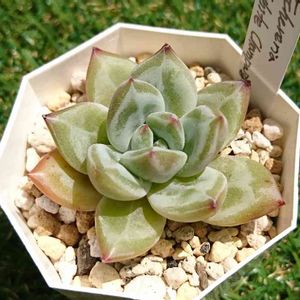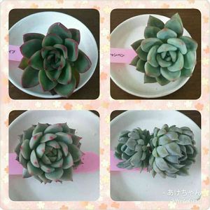 おはようございます。 今日の一枚です。 エケベリアおまかせ10個セットの中に入っていた子達です。 お皿は全部同じ大きさなので、下の二つはややチビっ子苗です。