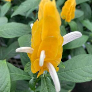 パキスタキス ルテア 茎の先に黄色の花穂をつけて苞の間から出る白い花が可愛い💛