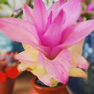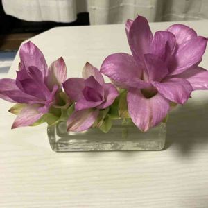 祖母が大切にしている春ウコンの花です。 次々と綺麗に咲き始めたので、 仏壇にあげる前に撮ったものです🐣。 切ってからも 綺麗でいてくれる期間が長く、 祖母も大喜びのお花です☺️