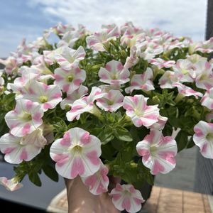 サフィニア系 3種類 ✂️してから1ヶ月余りで復活❣️ 1.2枚目 PW スーパーチュニア ✨ラズベリーチーズ✨ 2色がくっきりと素敵💕 3.4.枚目 サントリー サフィニアアート ✨ももいろハート✨✨ ハート型🩷の模様がくっきり 5枚目 PW スーパーチュニア サフィニアアートビスタミニ ✨ブルースター お花は少し小さめ 暑い中でまた咲いてくれて嬉しいです💕 葉っぱが見えないほどの満開にはならないけど、夏場は色がくっきりと綺麗なカラーです😊💓 もう少ししたらまた✂️しようと思ってます。ガッツリにいつも躊躇しますが🫢 (7月7日に✂️)