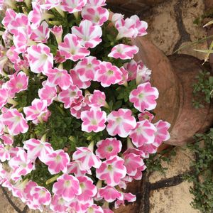 おはようございます😊 4月にお迎えしたサントリーフラワーズさんのサフィニア達🪴 やっと咲いてきましたが 雨が続くので切り戻ししました✂️ 次回の満開に期待したい😂