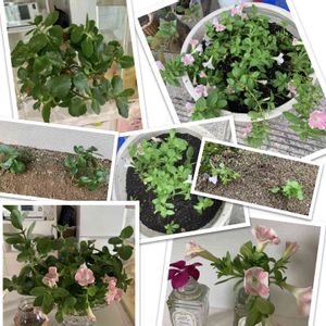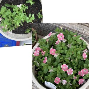 サフィニア ローズとホワイトを✂️する前に、仲間同士を📸 🍑💗も、ご一緒に😉 ピュアホワイトは、値下げ品、¥50だった🌸 よくぞここまで、成長してくれました😂