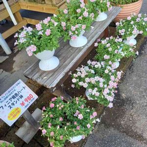 近所のHCに、サフィニアアート ももいろハート🍑💗が、こんなに売ってます💡 梅雨で、🌟になってしまった…と、ガッカリ🙍してる人は、欲しくなるんじゃないかな… と、思いました😊 かなり、徒長してるから、処分の半額になったら、買ってあげるのにな⤴️😁