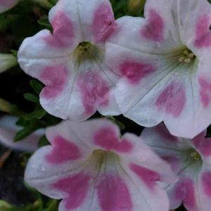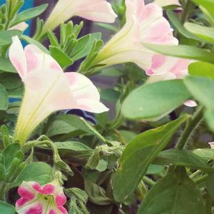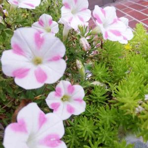 今朝の散歩で🐶🐾 通りすがりのお家に咲いてました(◕ᴗ◕✿) 白にピンクが少し入っていて可愛い💕😊 サフィニア? ペチュニア? [サフィニアももいろハート] と教えて頂きました… 有り難う御座います🙏☺️