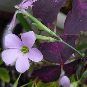 道路沿いのプランターにて、ピンク色の「オキザリス」と紫色の「オキザリス 紫の舞 トライアングラリス」をパチリ!📸🩷💜🍀😊😄🤗✌️
