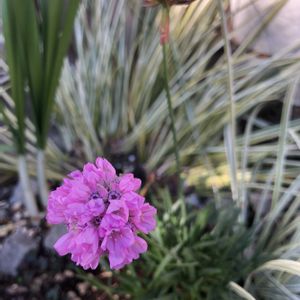 アルメリア ピンクボール🩷 根が浮き上がって 横向きに咲いちゃいました🤗