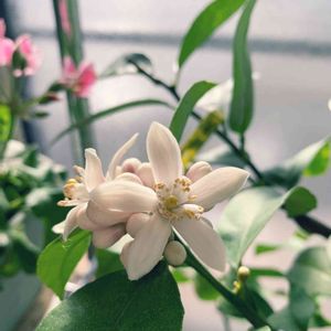 鉢植えのレモンの花が咲きました🍋 若葉の香りは最高❣️