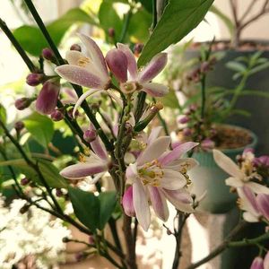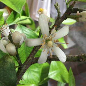 レモンの花が咲きました🍋 朝は氷点下になる日があり、 怖くてお外にまだ出せません💦