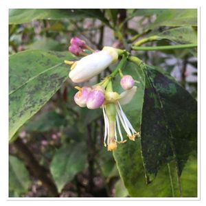 🍋レモンの花が撮れました 紫がかった蕾、これが🍋なの❓️❓️ でした いい出会いになりました 👵はいい一日になりました