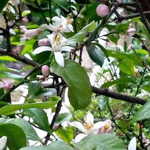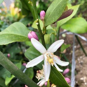 レモンの花が開花しました! ほかのツボミを切った方が良いのか? レモンの実、いっぱいできて欲しいなー。