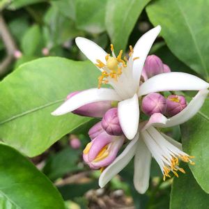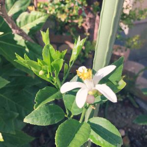 昨年春にお迎えした トゲなしレモンの花が 咲いています💕 昨年、花は咲いたけど 実はならなかったので 今年は期待してます🤗
