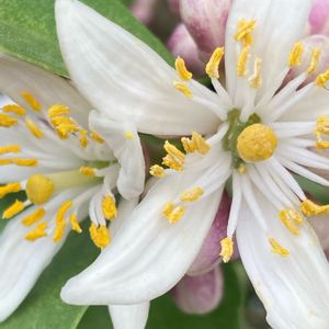 今日のお花「レモン」(マイヤーレモン) 🌿🤍 何処かからか良い香りが漂っていて、探してみたらこのお花でした🤗〜~ (3年前の5月撮影) 🏷元気な月曜日❗ 🏷青空に映える 🏷青空と一緒に に参加させていただきます🙇