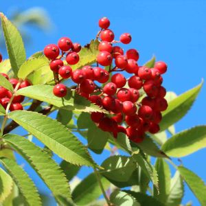 ナナカマドの実が赤くなって、今日は雲一つない秋の空が、いっそう澄み渡っているように感じます🍂