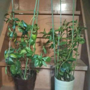 SaseboNagasaki 左マンデビラ二年目 その6 右サンパラソル一年目半分くらい 剪定しました。 今日から室内で冬越しさせます。